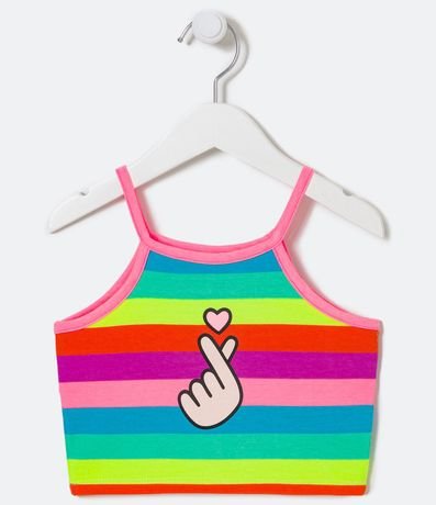 Blusa Cropped de Breteles Rayada con Estampa Dedos - Talle 5 a 14 años