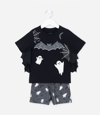 Pijama Corto en Algodón con Estampa Fantasmas y Murciélago - Talle 2 a 6 años
