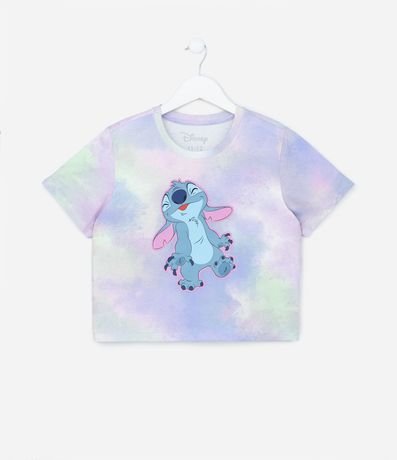 Remera Comfort Infantil Estampado Stitch con Fondo Tie Dye - Talle 5 a 14 años