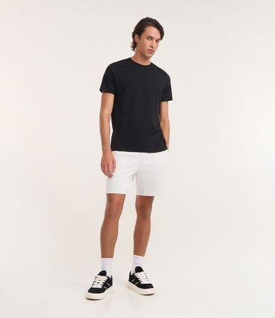 Bermuda masculina con textura jacquard en padrón chevron, cintura elástica con cordón y bolsillos funcionales. Confeccionada en algodón y viscosa certificada, ofrece comodidad y estilo. Producida con buenas prácticas ambientales. Ideal para looks casuales con toque sofisticado.