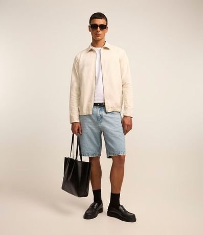 Bermuda Recta Jeans con Pespunte Contrastante y Bajo Plegado | Renner