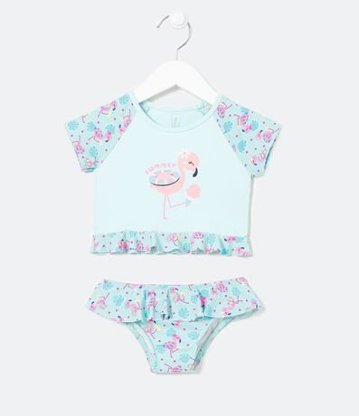 Bikini Cropped Infantil Estampado de Flamencos - Tam 1 a 4 años 1