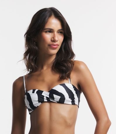 Bikini Top en Poliamida con Cruzado y Estampado Rayado | Renner