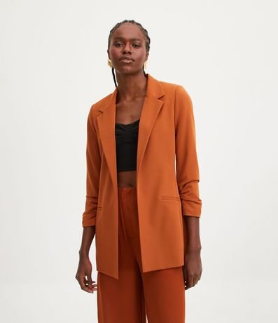 Blazer Alargado Sastrería en Crepe con Pliegas en los Puños | Renner