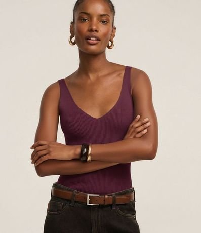 Blusa básica sin mangas, confeccionada en punto con caida leve, con textura acanalada. Prenda tiene escote v en el busto y espalda descotada. Este producto posee viscosa certificada en su composición, siendo ambientalmente más sostenible.