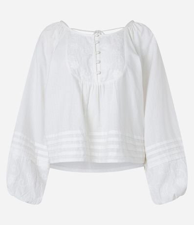Blusa Amplia en Batista con Botones y Bordado Floral 1