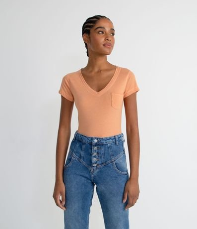 Blusa Básica en Algodón con Manga Corta y Bolsillo Pequeño | Renner