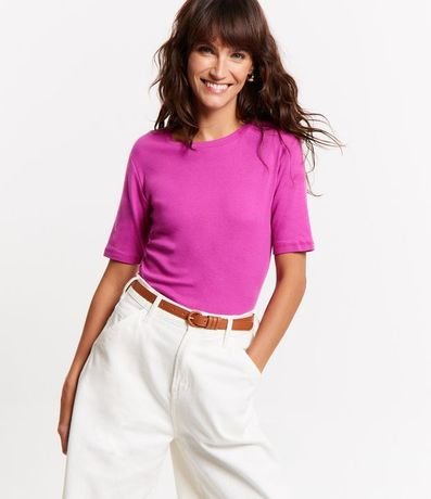Blusa femenina básica, manga corta y cuello redondo. La pieza versátil es un comodín en tu guardarropa, con gran facilidad de uso, la pieza va bien con cualquier look.