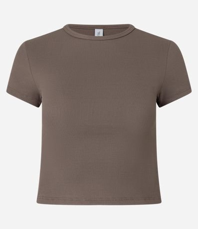 Blusa básica femenina confeccionada en poliamida, con cuello redondo y mangas cortas.