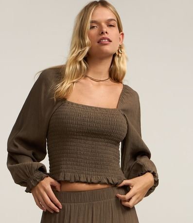 Blusa corta en Crepé con Manga abullonada y Lastex 1