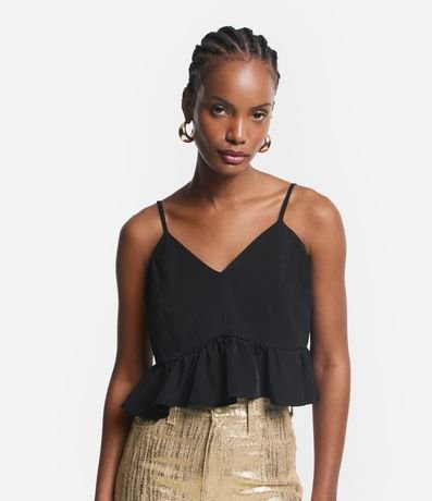 Blusa Cropped de Alça en Crepé con Babados en la Bajo | Renner