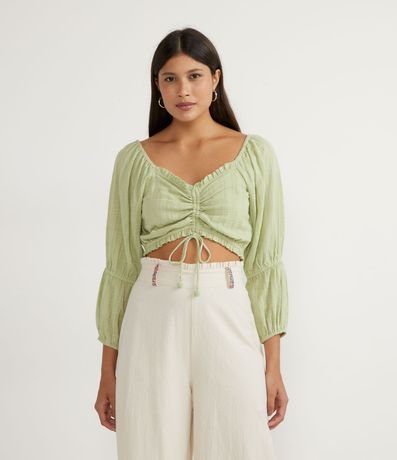 Blusa Cropped en Algodón con Flecos y Lazo 1