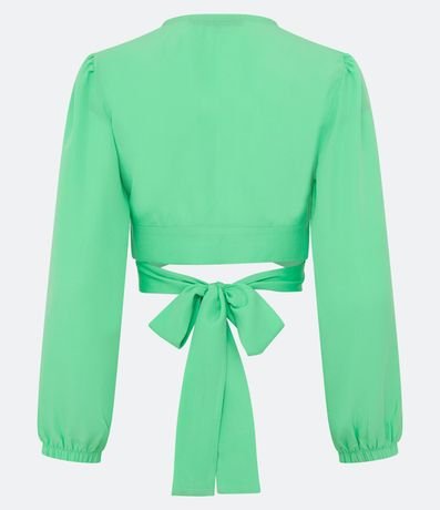 Blusa Cropped en Crepé con Escote V y Lazo en la Cintura 1