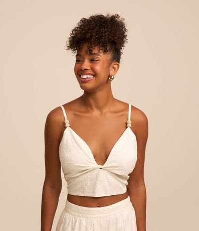 Blusa Cropped en Laise con Detalle en los Breteles | Renner