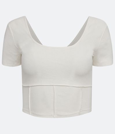Blusa Cropped en Ribana con Manga Corta de Recortes de Cuentas 1