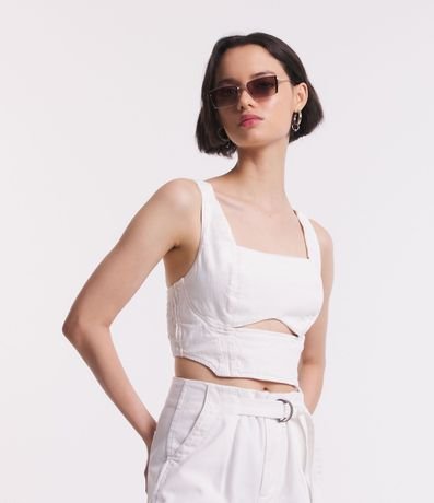 Blusa Cropped en Sarga Corset con Recorte Cutout Delantero | Renner