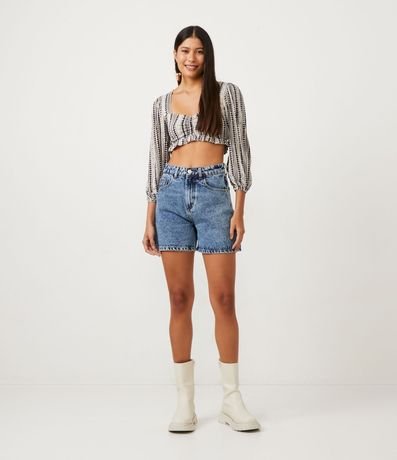 Blusa Cropped en Viscosa con Estampado Étnica y Escote Corazón | Renner