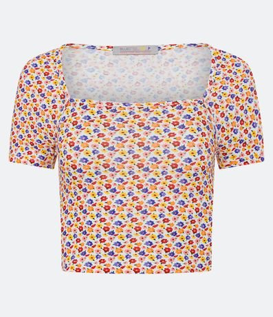 Blusa Cropped Manga Curta em Meia Malha com Flores Estampadas 1