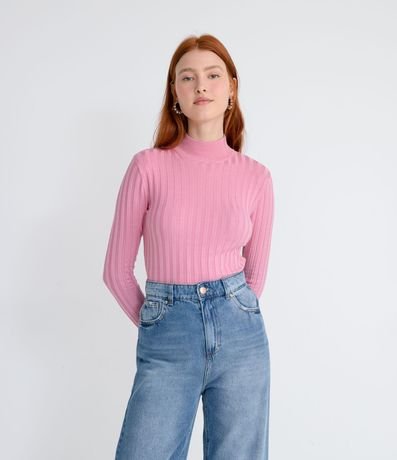 Blusa de Punto Acanalado con Cuello Alto y Manga Larga