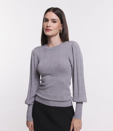 Blusa de Punto con Manga Abullonada y Textura de Corazones | Renner