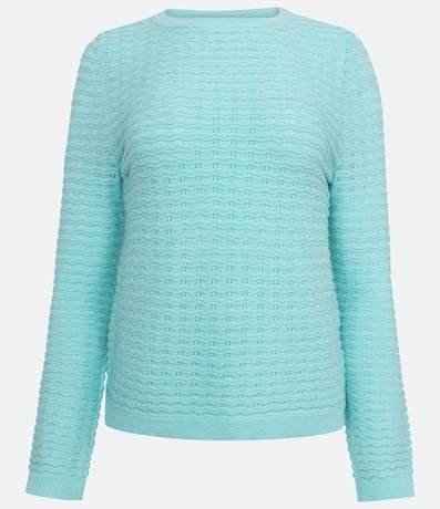 Blusa de punto con textura ondulada, con mangas largas, y confeccionada en material más sostenible.
