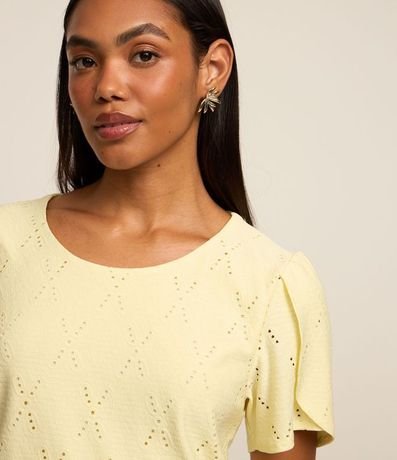 Blusa en Laise con Manga Abullonada y Detalle Sobrepuesto | Renner