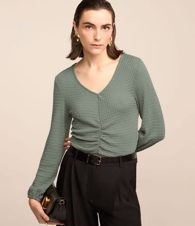 Blusa en Poliamida con Texturas y Detalle Drapeado 1