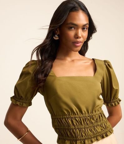Blusa en Tricolina con Manga Abullonada y Lastex en la Base | Renner