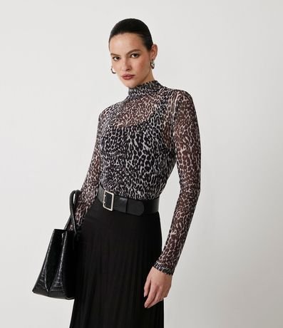 Blusa en Tule con Cuello alto y Estampado Animal Print Jaguar 1