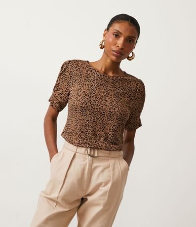 Blusa en Viscolycra con Estampado Animal Print y Pliegues en las Mangas 1