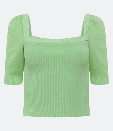 Blusa en viscosa acanalada con mangas cortas y escote cuadrado. Confeccionada en material responsable.
