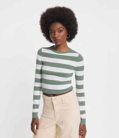 Blusa en Viscosa Rayada con Puños y Bajo Acanalado | Renner