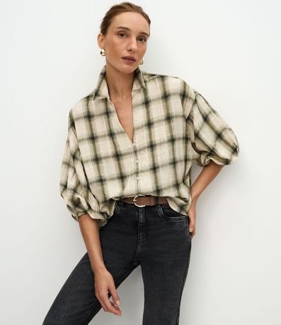 Blusa Manga 3/4 en Viscosa con Estampa de Cuadros | Renner