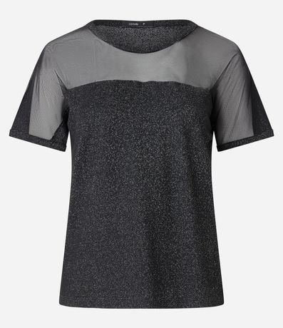 Blusa Manga Corta en Viscosa Brillosa con Hilo Metalizado | Renner