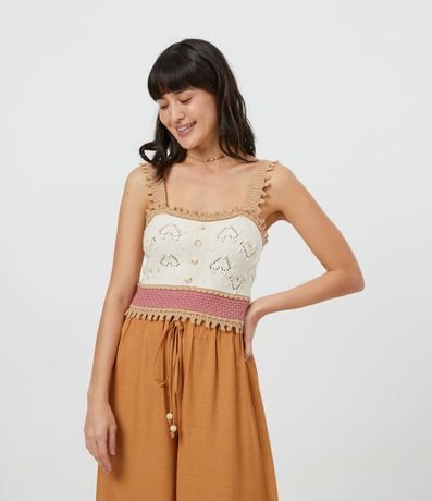 Blusa Musculosa Corta de Punto con Pontos Vazado de Corazón 1