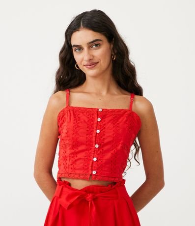 Blusa Musculosa Cropped en Laise con Entremedios y Botones Aplicados 1