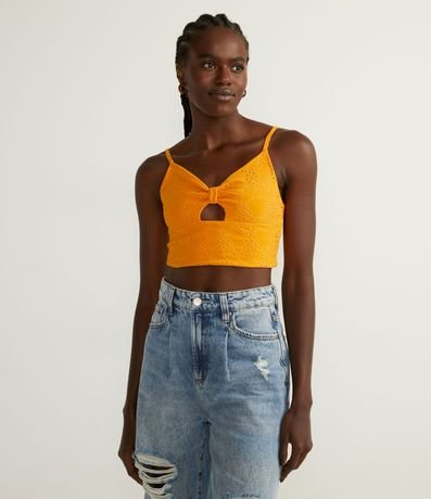 Blusa Musculosa Cropped en Laise Texturizada con Recorte Frontal | Renner