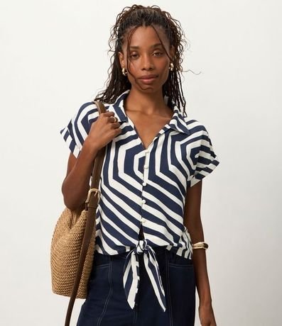 Blusa de mangas cortas, confeccionada en piquet, com colarinho en el cuello, botones delanteros. Prenda bicolor con estampado geométrico. este producto posee Material más sostenible en composición, siendo ambientalmente más sostenible.