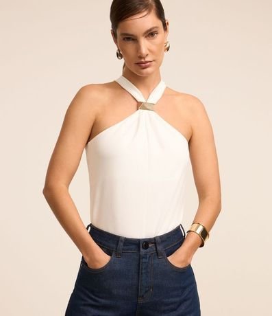 Blusa sin Manga en Crepé con Detalle de Metal en el Cuello | Renner