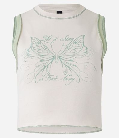 Blusa Sin Manga en Rib con Costura del Revés y Estampado de Mariposa 1