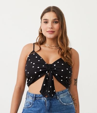 Blusa Super Cropped en Viscosa con Estampado Poá y Cierre Frontal 1