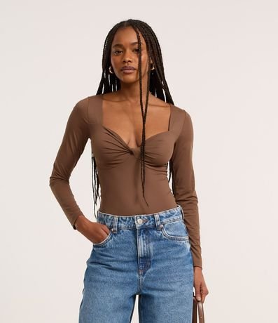 Body manga larga con busto torcido, confeccionado en microfibra y producido através de buenas prácticas ambientales.