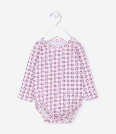 Body Largo Infantil con Estampado de Cuadros con Corazones - Talle 0 a 18 meses | Renner