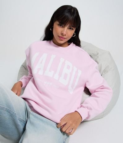 Buzo femenino confeccionado en algodón certificado BCI, através de buenas prácticas ambientales. Posee modelo manga larga, cuello redondo y estampado con lettering centralizado.