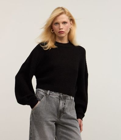 Sueter de punto texturizado, cuello ligeramente alto y puños ajustados.