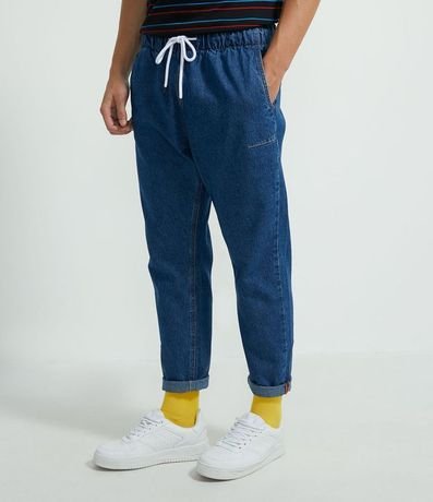 Calça Jogger Jeans com Cós Elástico e Amarração 1