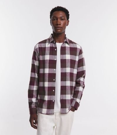 Camisa Comfort en Algodón con Estampado de Cuadros y Mangas Largas