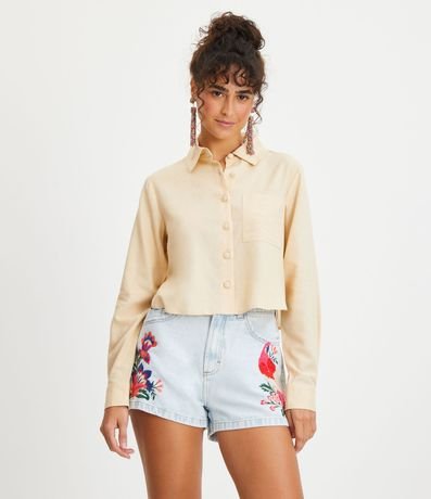 Camisa Corta en Lino con Mangas Largas y Bolsillo Frontal | Renner