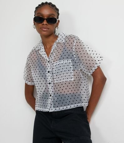 Camisa en Organza con Estampado de Mini Corazones y Bolsillo Frontal | Renner