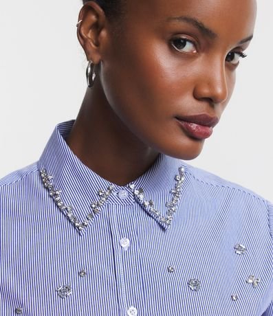 Camisa en Tricolina con Aplicación de Chattons y Estampa en Hilo Teñido 1
